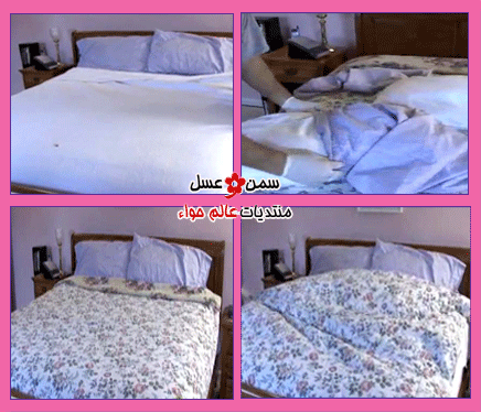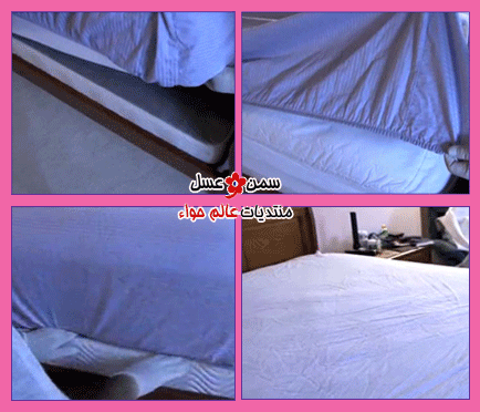 اولا الشرشف المطاط ثم الشرشف العادي ثم تلبس المخدات وأخيراً