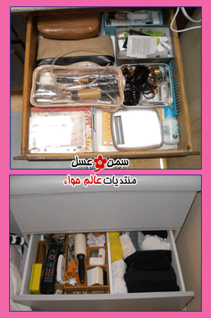 ويمكن تنظيمها باستخدام مقسمات الادراج ، او بالامكان عمل هذه المقسمات باستخدام الفلين ( قصي الفلين