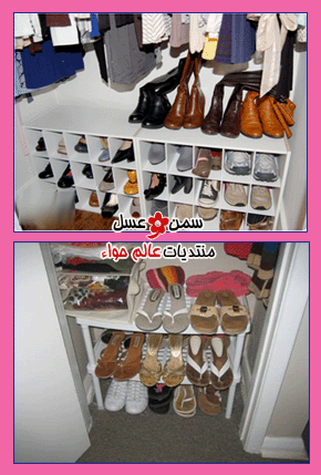 الأحذية يمكن تنظيمها بالرفوف او الجزامات ..