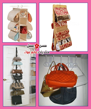 الحقائب يفضل تخصيص دولاب لها او استعملي الحوامل ..