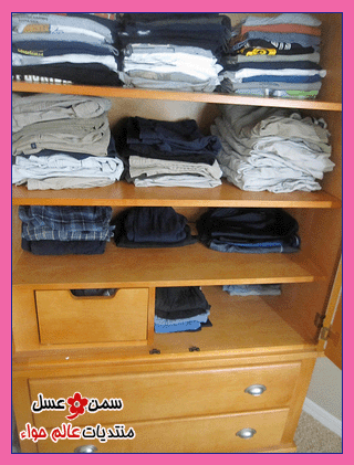 يفضل ترتيب الملابس بهذا الشكل الجميل دائما ( و سنتطرق بإذن الله لطريقة الترتيب في درس الغسيل و الكي )..
