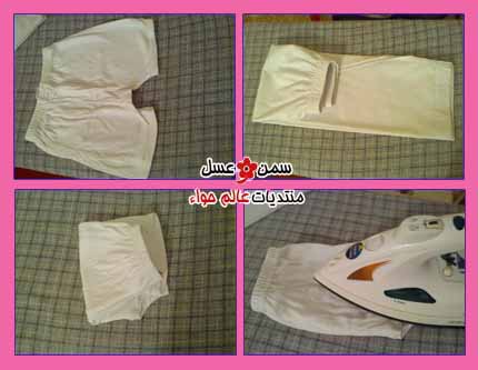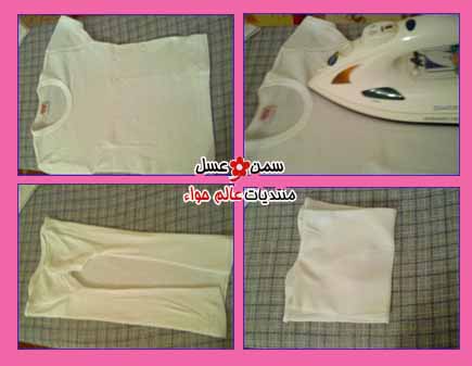 الآن بعد ان انتهيتي من كي جميع القطع ضعي الداخلي و الفانيله فوق بعضها