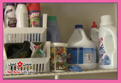 ولكن قبل ذلك خصصي سلة او دولاب لتنظيم مساحيق و منتجات الغسيل مع بعضها