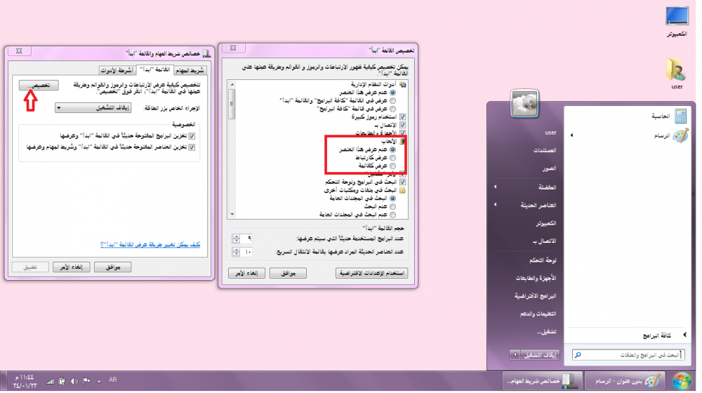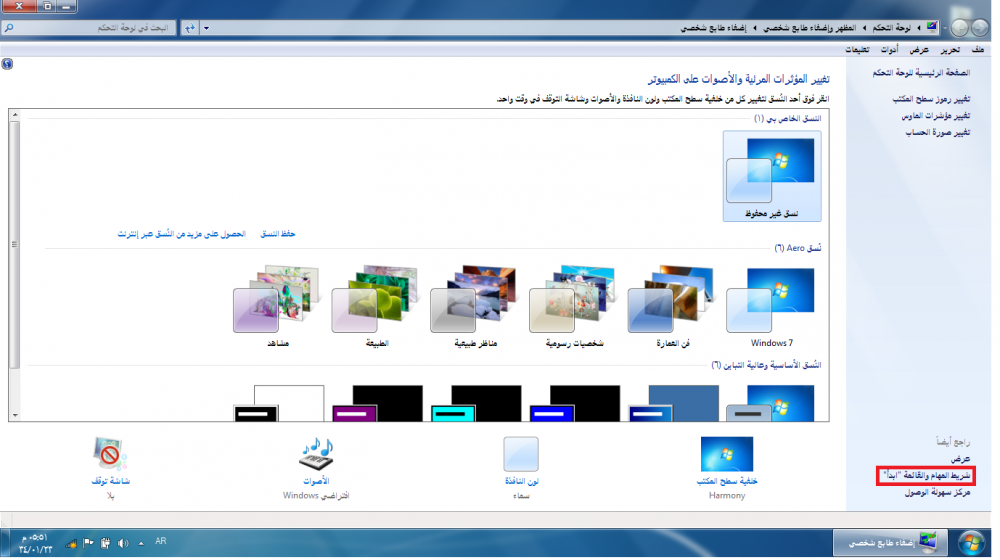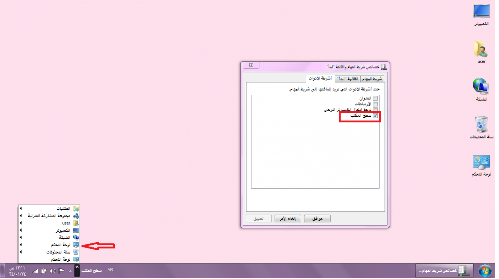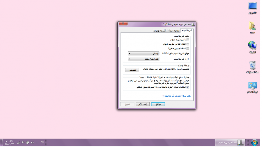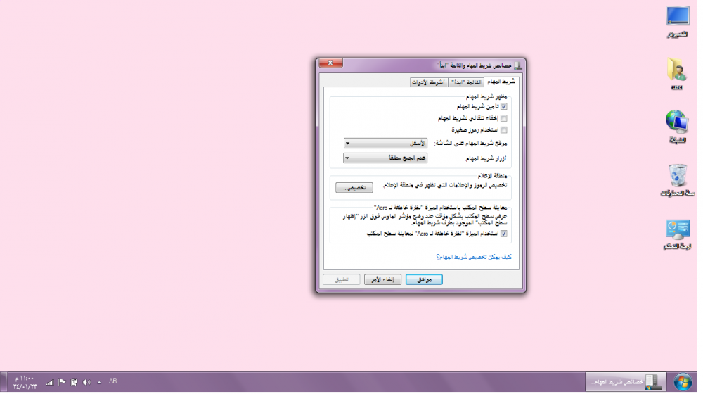 تخصيص شريط المهام :