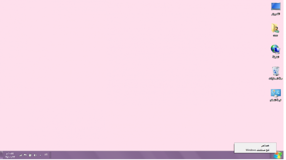 من زر الفارة الايمن على سطح المكتب تخصيص