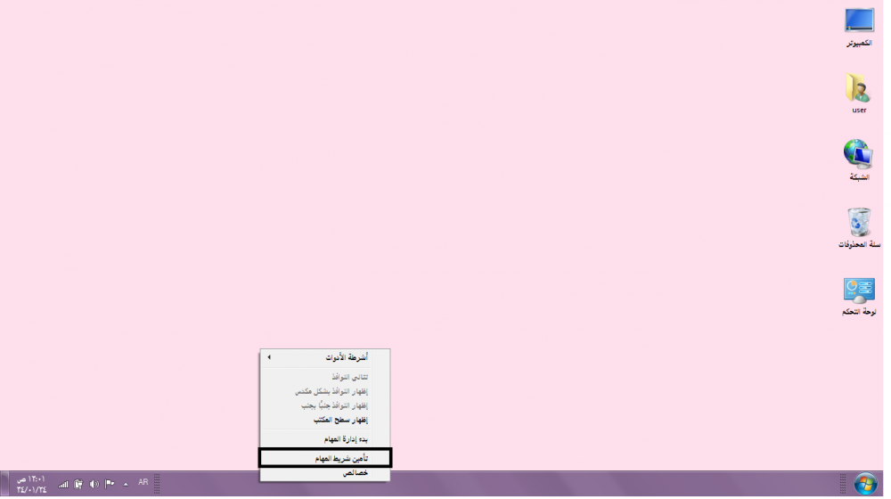 اضغطي على تامين شريط المهام