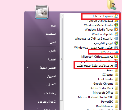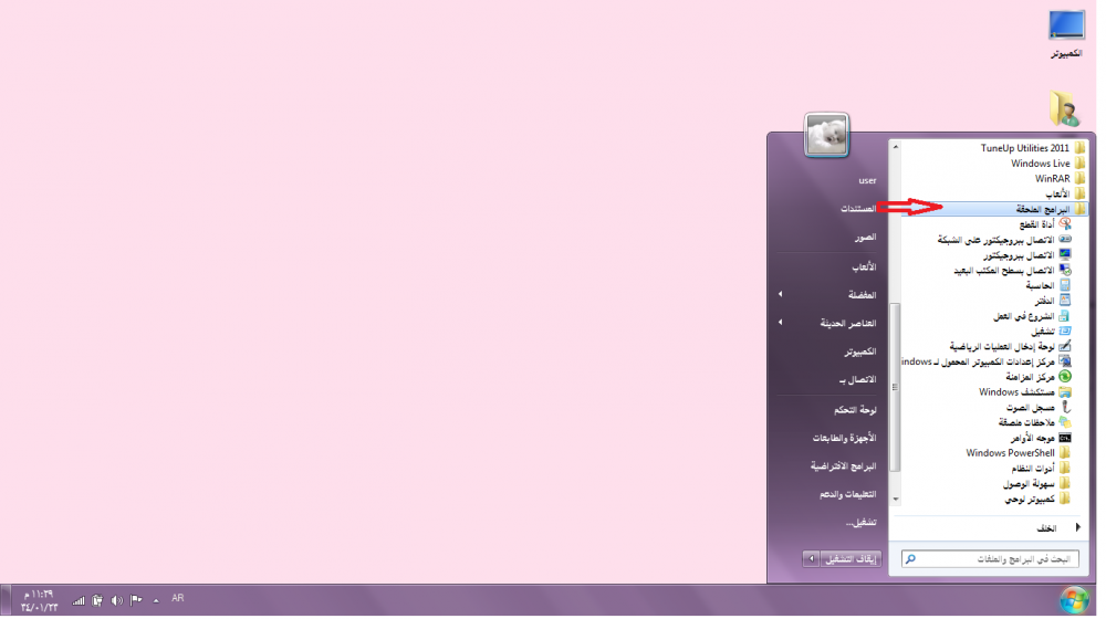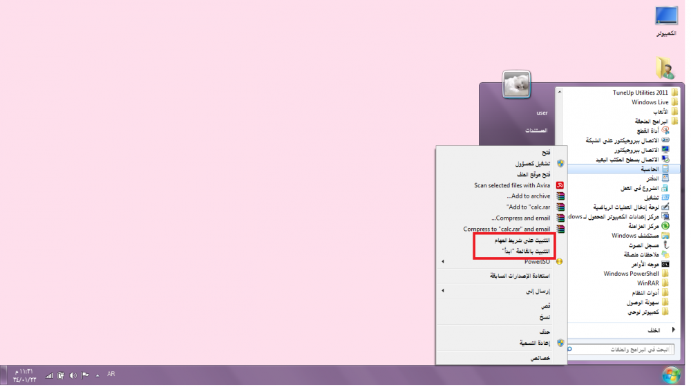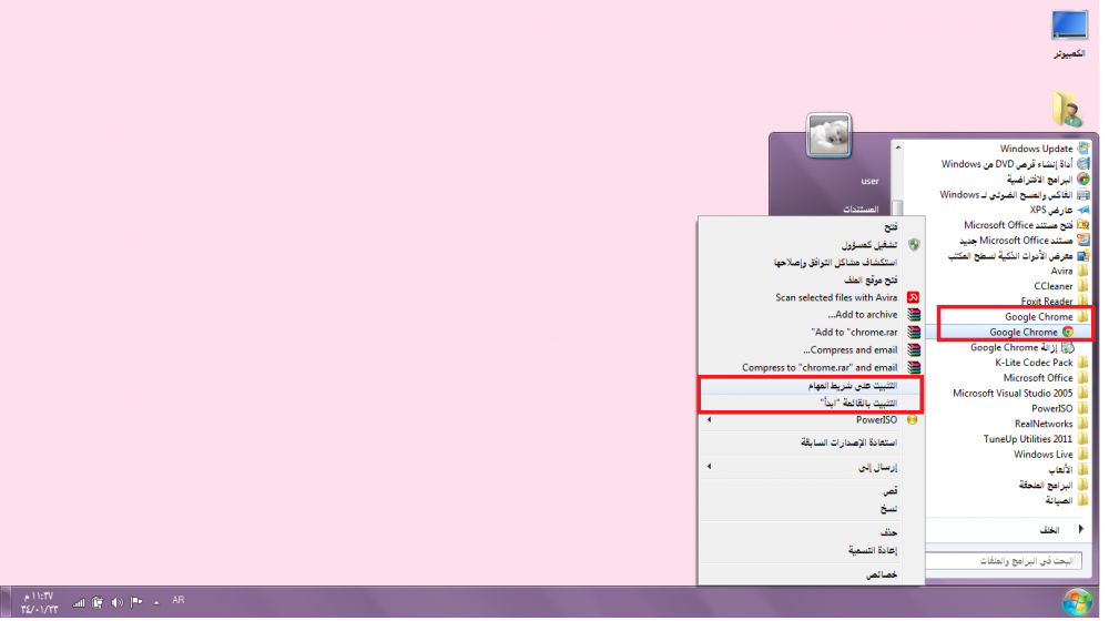 تثبيت البرامج على قائمة ابداء وشريط المهام :