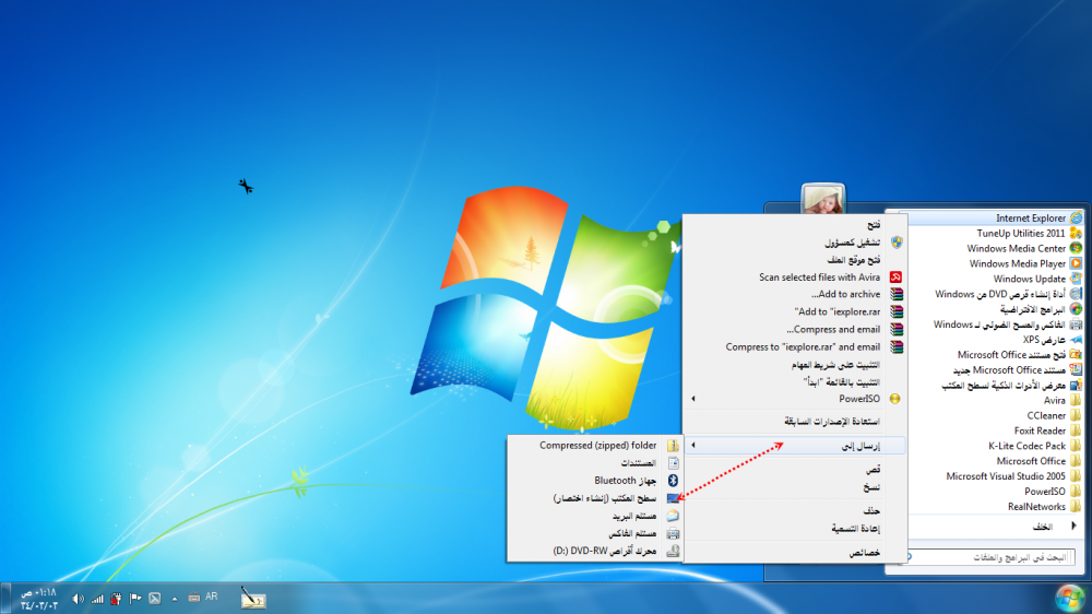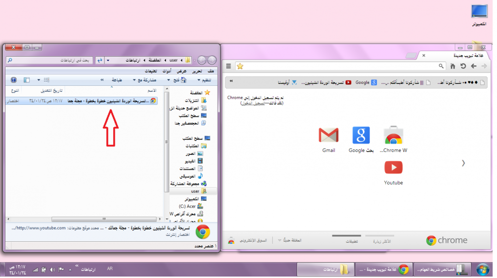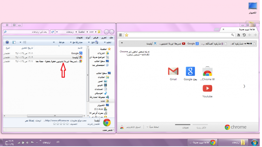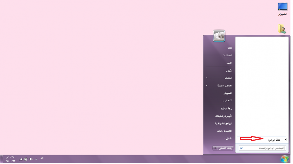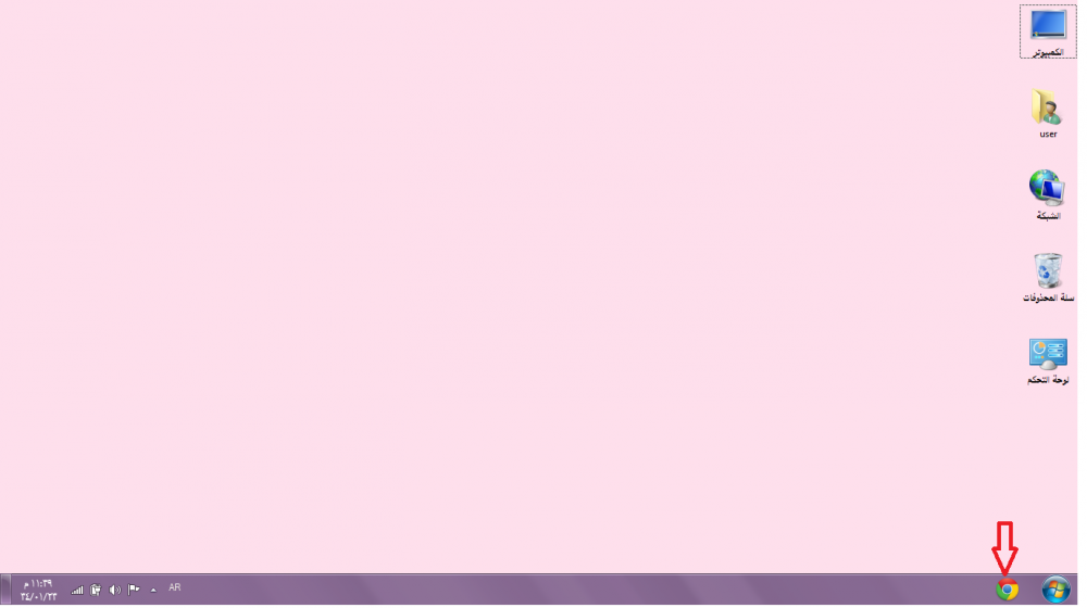 لو اخترنا سطح المكتب تظهر لنا جميع الرموز الموجودة على سطخ المكتب شوفي السهم
