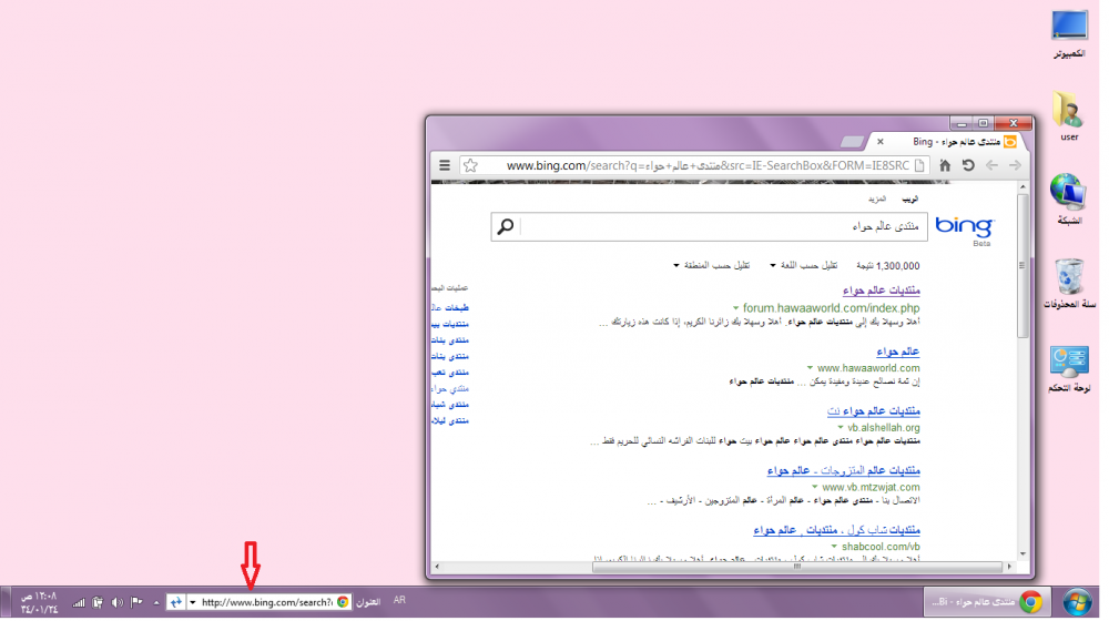 لو اخترنا عنوان يظهر لنا مثل مربع البحث اسفل شريط المهام اكتبي في العنوان الذي تردين البحث عنه لو كتبنا منتدى عالم حواء