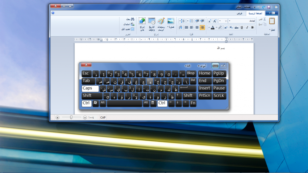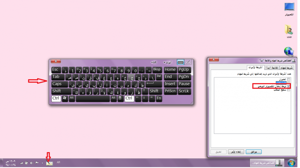 وحة ادخال تظهر لنا كيبورد على سطح المكتب ورمزة موجود على شريط المهام