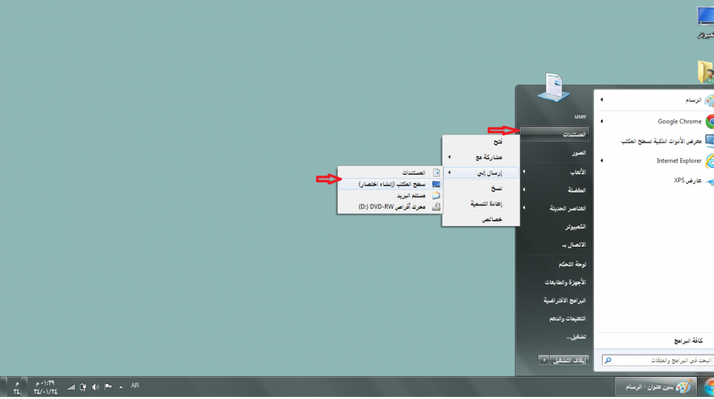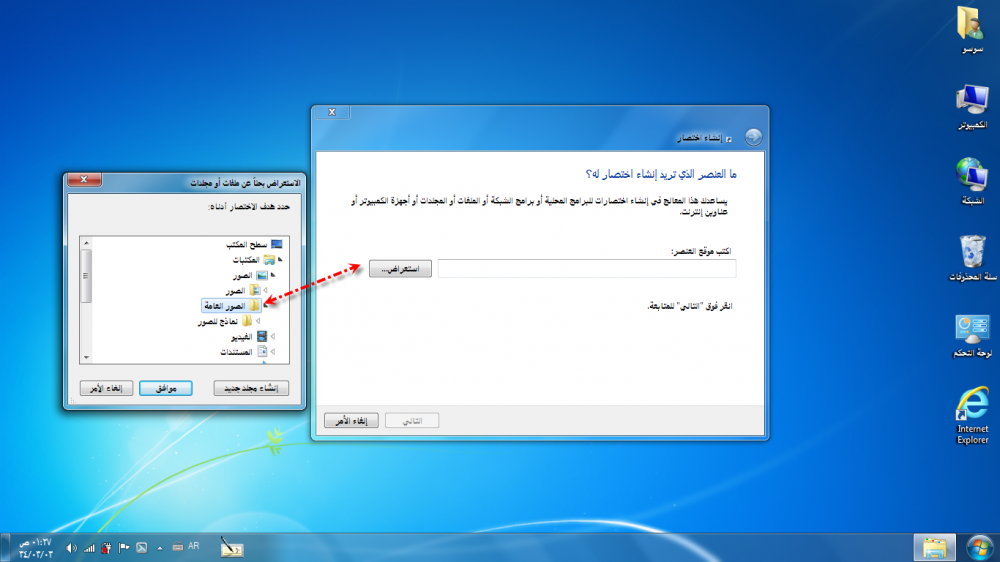 اجعلي اختصار لمجلد الصور على سطح المكتب