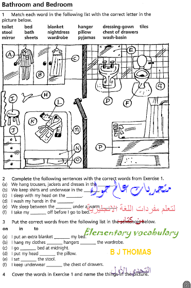 بعد دراستك وفهمك وحفظك لمفردات Bathroom and Bedroom من كتاب