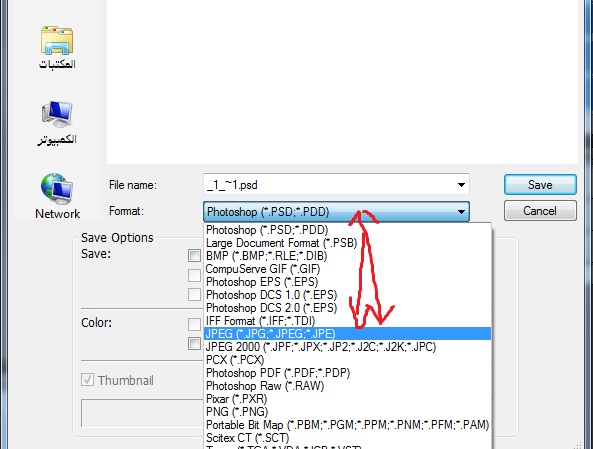 شوفي بالصورة وطبقي اللي فيها غيري صيغة الفوتوشوب الى صيغة الصورة