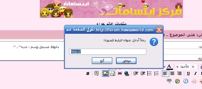 وتلصقي الرابط بمكانه وتخناري موافق ورح تطلع معك الصوره....