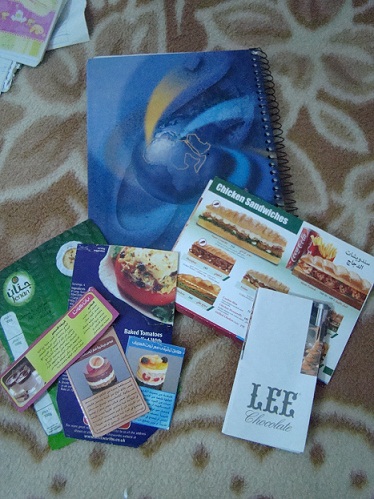 ومعه مينو مطاعم ووصفات بتكون على علب واكياس بجمعهون مشان افكار التقديم