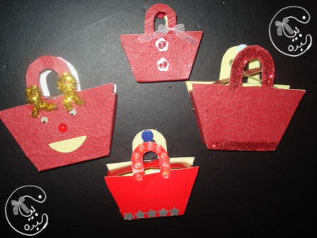 وكان عن عمل علبة هدايا على شكل حقيبة بخامة الورق المقوى