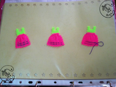 وسيلة الخطوات كانت عبارة عن فستان عروسة مثبتها على لوحة ونفذت عليها خطوات العمل