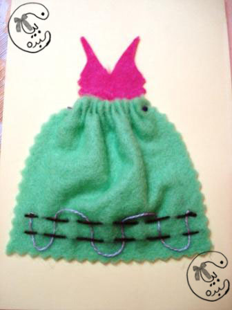 ووزعت على البنات العينات إلي يشتغلوا عليها برضوا على شكل فساتين يشتغلوا في طرفها الغرزة وبعد ما خلصوها