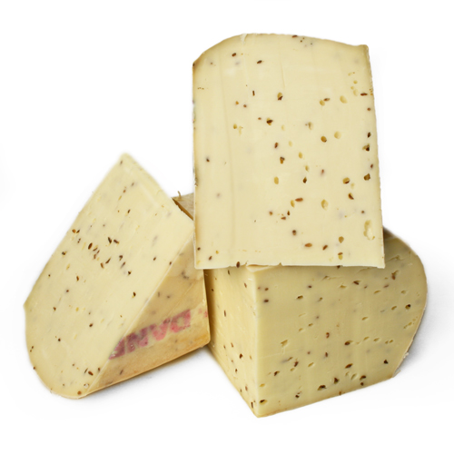 جبن يوجد و يصنع فى الدنمارك وهو من اللبن البقرى المضاف علية بذور الكراوية