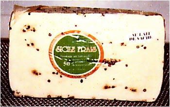 جبنة مضغوطة ، تخضع لمعالجة حرارية بدرجة 65 درجة مئوية للحليب الكامل ، يتم تغليفها بإحكام بالفلفل الأسود ، وتزن حوالي 4.5 كيلو غرام.