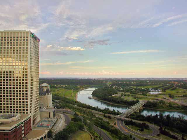إدمنتون هي سادس أكبر مدينة كندية ويمر خلالها نهر سسكاتشيوان الشمالي .
