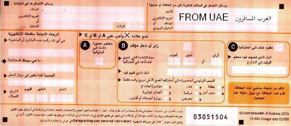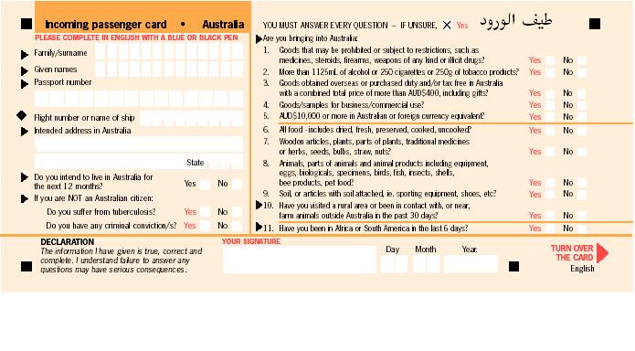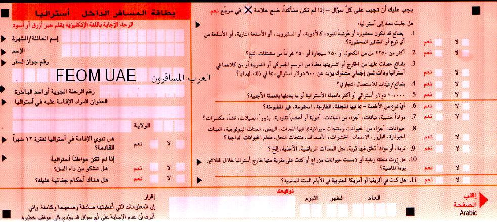 ومثل ماقلت لك الكرت او بطاقة الدخول لاستراليا اللي بيوزعونه في الطياره عشان تعبونه اكتبي فيه كل شي معك وعبيه بدقه