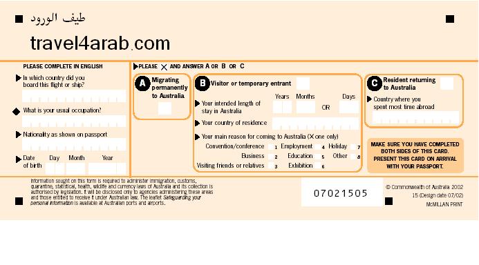 هذي صورة نموذج بطاقة الدخول لاستراليا بالانجليزي