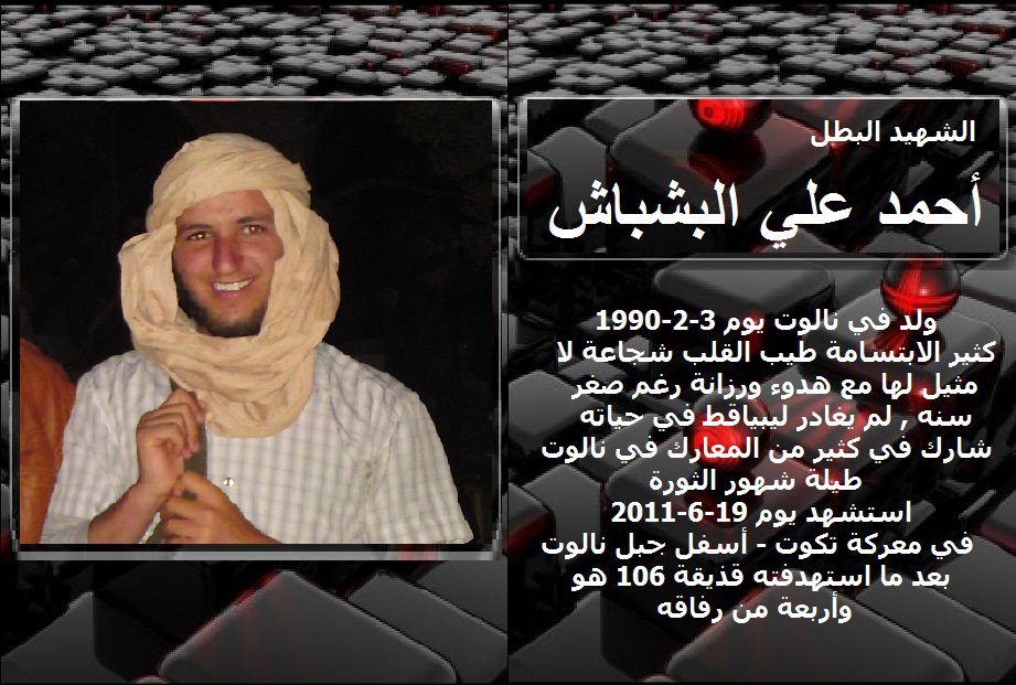 علي هو اول شهيد من مدينة نالوت يسقط في ميدان المعركة .