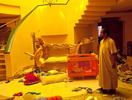 أما من الداخل، فالبيت قصر فرعوني وأكثر، لذلك فلقب “كلاوديا شيفر ليبيا” الذي كانوا يطلقونه على الفتاة التي سماها العقيد على اسم والدته لشبهها بعض الشيء بعارضة الأزياء الألمانية، هو قليل عليها، ولا يناسبها إلا لقب “كليوباترا ليبيا” على الأقل، وتؤكد ذلك صورتان اطلعت عليهما “العربية.نت” من مجموعة التقطها مصور بريطاني اسمه جاك هيل، من دون أن يقصد القصر بحد ذاته، بل كانت صور من جولة قام بها هنا وهناك في العاصمة الليبية.