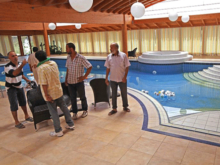 وفي الصورة الثانية نرى مسبحا داخل القصر يبدو أنه مطل على حديقة ربما كان فيها مسبح آخر أيضا. وتحف بالمسبح الرخامي ستائر بنية اللون تناسب لون سطحه الخشبي. وفيه نرى ألعابا للأطفال متروكة وهي طافية على الماء، كما وكأنه مسبح خاص للصغار، لأن عائشة القذافي البالغ عمرها 35 سنة متزوجة وأم لأبناء لا يعرف الليبيون عددهم، وهم من زوجها الذي اختاره لها والدها حين أتمت العشرين، وهو أحمد القذافي القحصي.