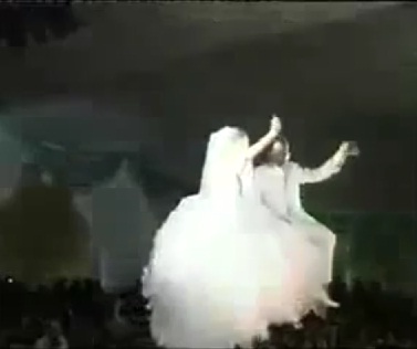 انتشر فيديو على موقع “يوتيوب” يُظهر عائشة القذافي ابنة الرئيس الليبي المختفي العقيد معمر القذافي وهي تطير بجوار عريسها فوق رؤوس المدعوين.