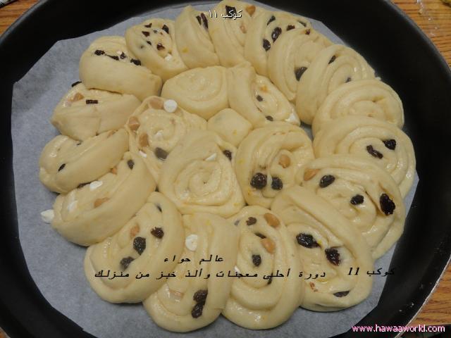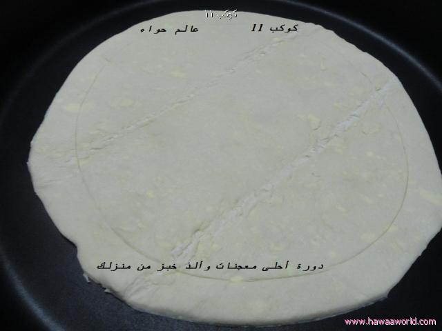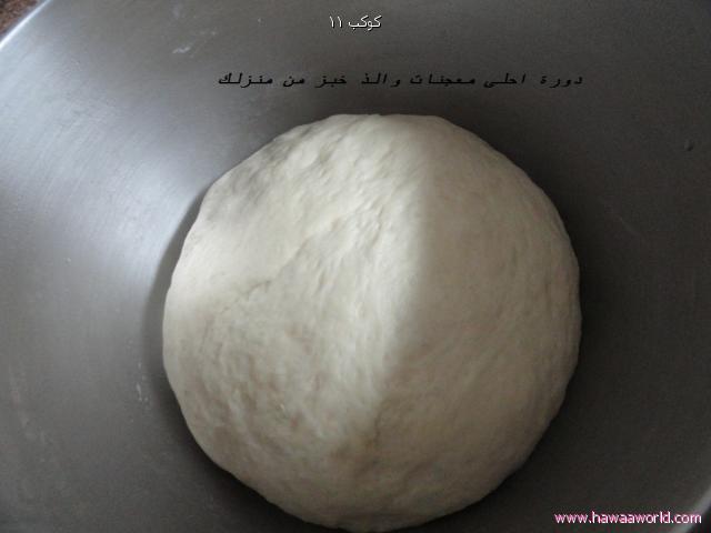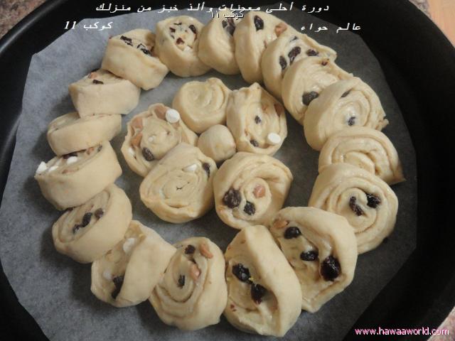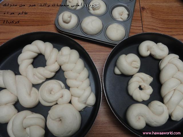 ضعيها في الصينيه الخبز وغطيها ودعيها تتخمر قرابة النصف ساعه