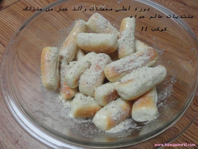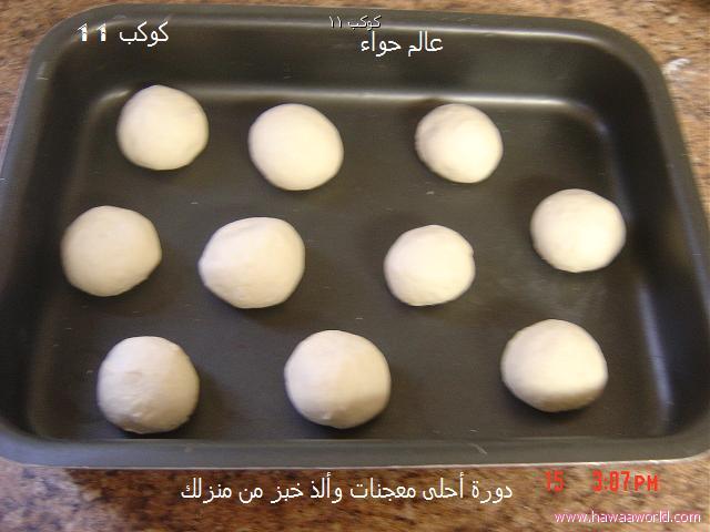 ضعي دقيق بين حبات الخبز كي يسهل فصلها اذا تحمرت