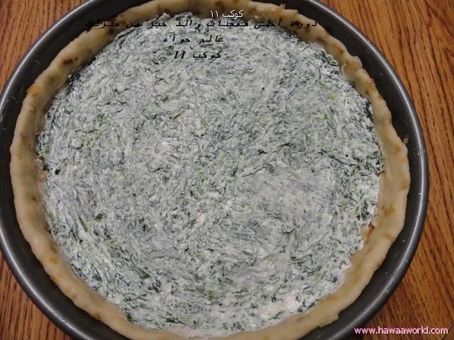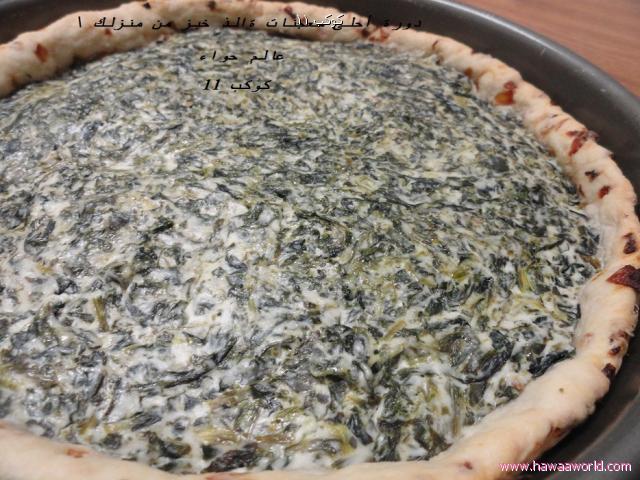 ضعي خلطة السبانخ على العجينه واخبزيها في الفرن