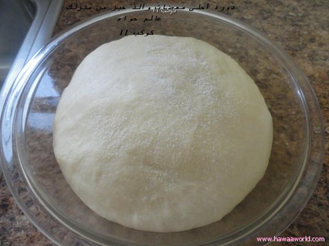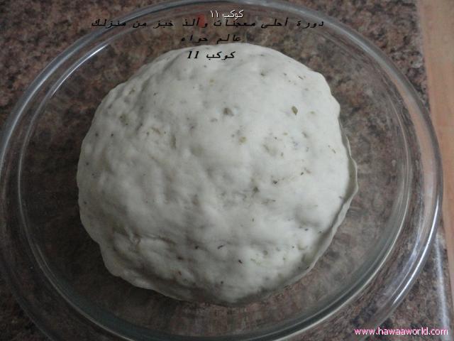 ضعي العجينه في اناء وضعي عليها الاوريغانو