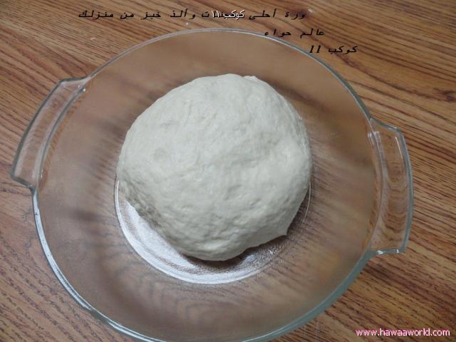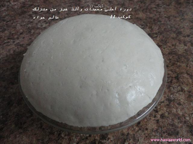 وضعي الرغيف عليه وغطي الرغيف وبعد نصف ساعه
