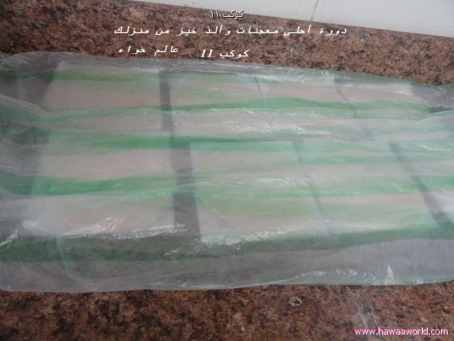 ثم رقيها عل الرخام ورشي المنديل بالدقيق