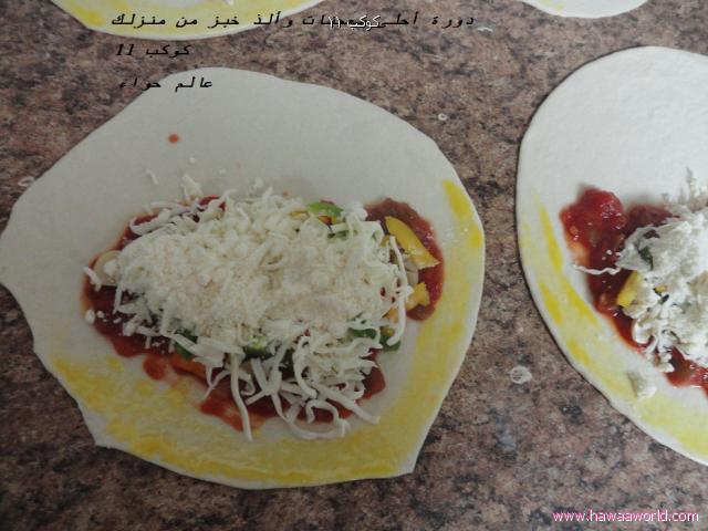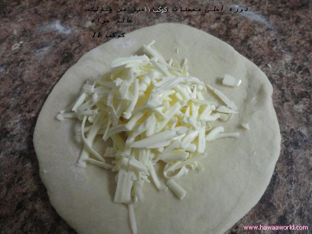 وتفرد بالفراده ويوضع الجبن تشيدر بالوسط وتقفل الاطراف
