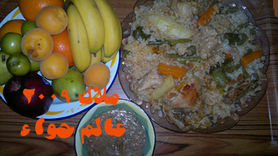 اما عن الطبق حلوو انك تقلبيه في الصحن وقت التقديم وترتبيه وتحركيه حتى يبان الرز الابيض من الاصفر