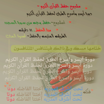 مشروع ~ دورة آيسر واسرع لحفظ القرآن الكريم