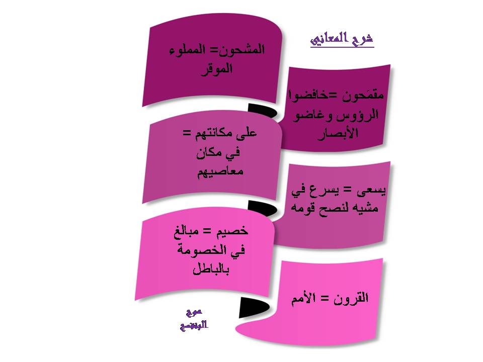 2- بعد القراءة الكامل تنوقف عند المعنى الصعب ونبحث عنه المعني الكلمة