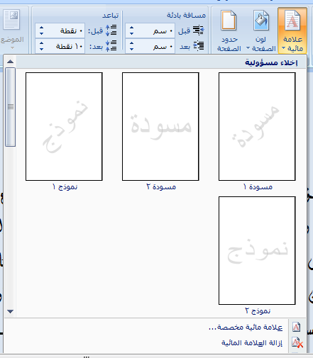 2-نحدد خلفية الصفحة اما لون او علامة مائية