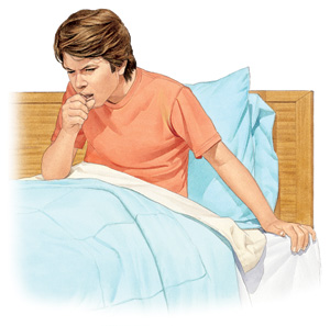 قومي بأعطائه الدواء الموصف له من قبل الطبيب مثل البخاخ او البخار