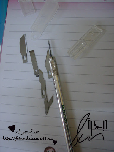 بعدين اخذت الكتر واخترت رأس صغير وحاد حتى اقدر اقص الاجزاء الدقيقة من الرسمة