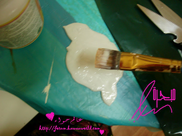 وبدأت الصقها بالغراء على الرسمة الي بالصحن