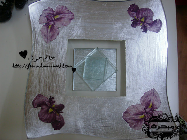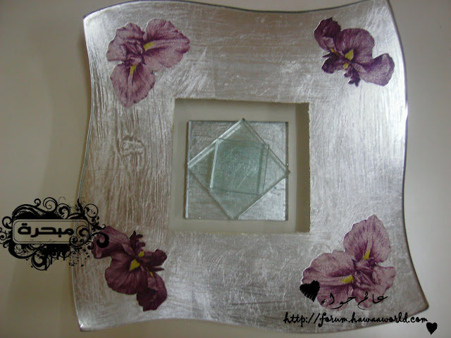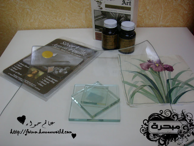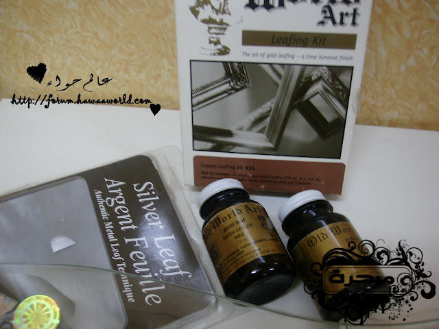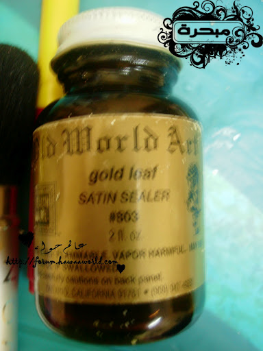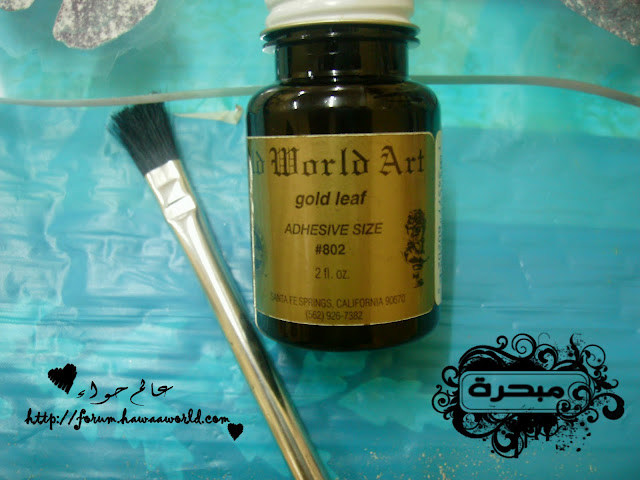 السلام عليكم ورحمة الله وبركاته اليوم عزيزاتي راح اتكلم عن الورق المذهب او ما يسمى باللفيز هو يستخدم على جميع الاسطح نبذة مختصره عن اللفيز او الورق المذهب منه ثلاثه الوان .. ذهبي golden leafs فضي silver leafs نحاسي Copper غراء خاص يباع معه بالعلبة او ممكن غراء الخشب مخفف بالماء (ولا ينصح به الافضل الغراء الخاص) نشوف تطبيقي عليه وراح اشرح طريقة استخدامة ان شاء الله ورق مذهب ويكون فيها علبتين وفرشتين الورق خفيف مرررررره يعني شيله يكون بحذر لانه سريع التفتت نبدأ العمل .. انا قصيت الرسمة الي حابة اشتغل عليها ولصقتها طبعا ان اشتغلت على الزجاج من الخلف اخذت العلبة الاولى (adhesive size ) وهذا هو الغراء دهنت المكان الي حابه اشتغل عليه بالورق وبعد ما انتهيت تركته ساعة قبل لا اشتغل عليه وهذا مهم لازم نترك الغراء ساعة قبل لا اضع الورق وبعدين بدأت اضع الورق اراعي وان اشتغل عليه ان الورق خفيف ويتفتت وبرفق وضعته حتى لو تفتت وشوفتي انو ما تغطى خذي الورق المتفتت وضعيه على المكان الي ما تغطى بالورق وبعد كذا بيدك او بالفرشاة الناعمة انا استخدمة فرشاة المكياج تبعي ما احتاجة يتبــــــع ..السلام عليكم ورحمة الله وبركاته اليوم عزيزاتي راح اتكلم عن الورق المذهب او ما يسمى باللفيز هو...