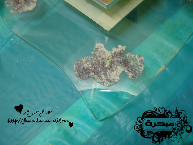 انا قصيت الرسمة الي حابة اشتغل عليها ولصقتها طبعا ان اشتغلت على الزجاج من الخلف