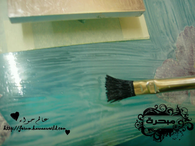 وبعدين بدأت اضع الورق اراعي وان اشتغل عليه ان الورق خفيف ويتفتت وبرفق وضعته حتى لو تفتت وشوفتي