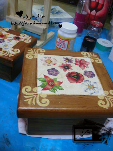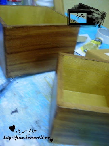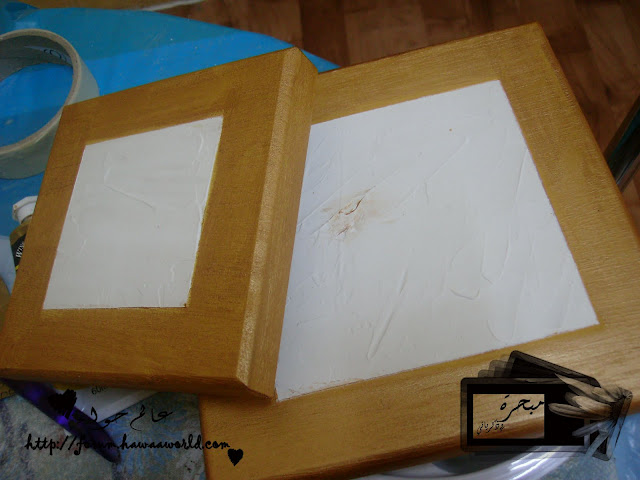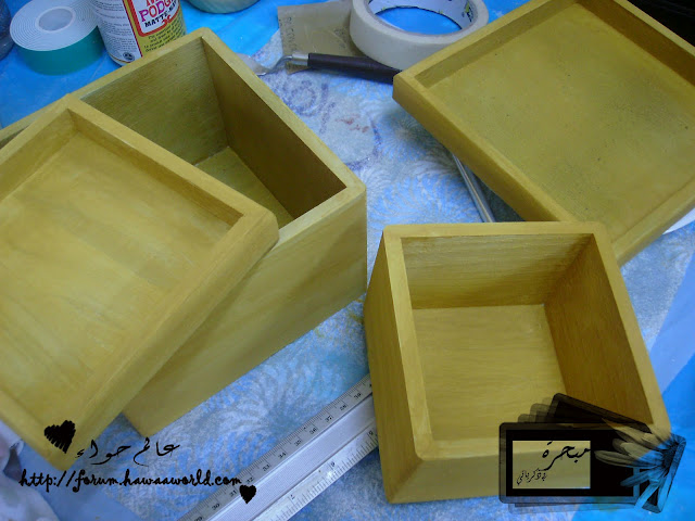 وتركتها تنشف على بال ما لونت باقي العلب بالون الذهبي فائدة اللون الي استخدمتها بعد التأسيس يظهر لنا اللون الذهبي ويبرزه