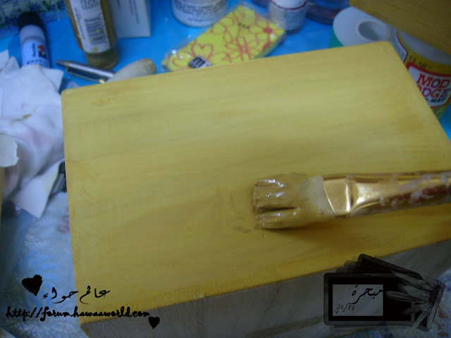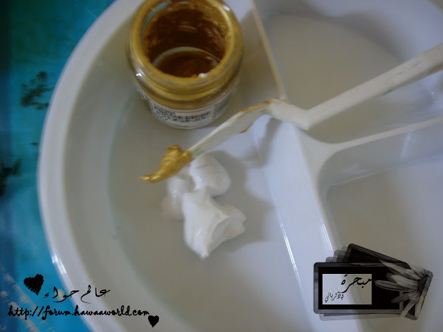 وهذا الون الذهبي الي استخدمتها اشتريتها من محل الدهانات لانو كنت احتاج كمية كبيرة بس للاسف جاي فاتح مره